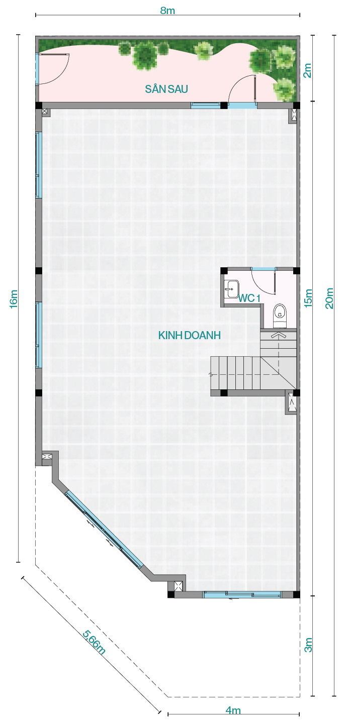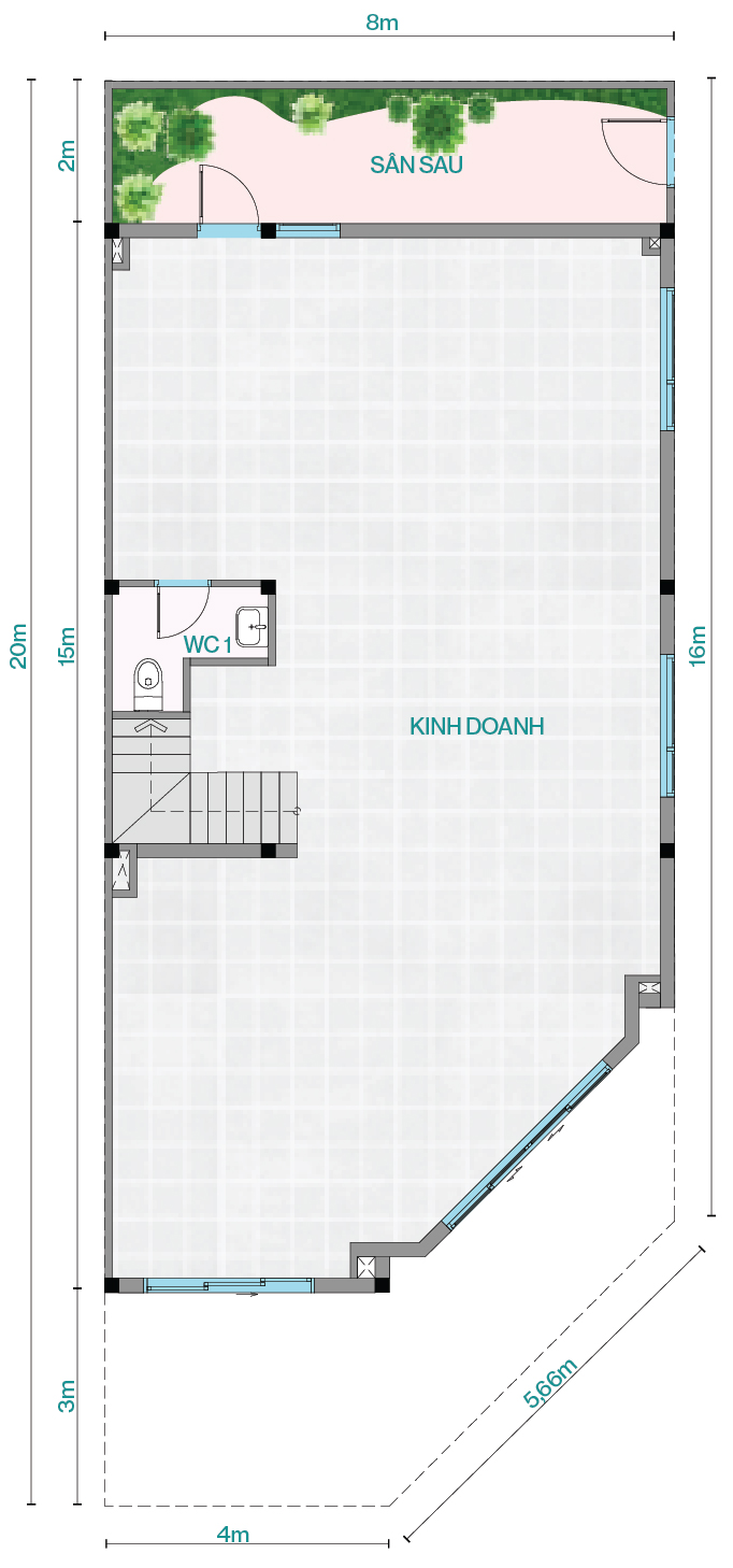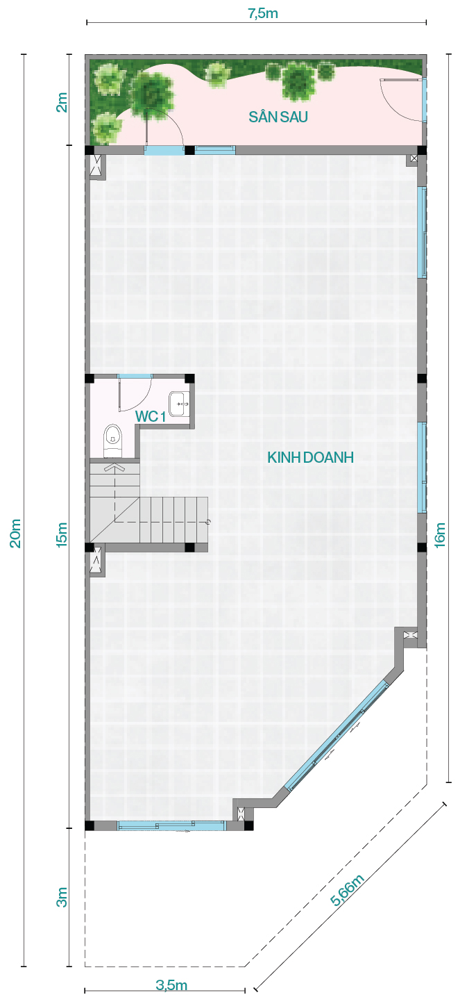 Phương án thiết kế tối ưu cho kinh doanh với 3 lầu, sân thượng rộng rãi, kinh doanh ở cả hai mặt tiền trước - sau. Một mặt là trục giao thông, một mặt là tuyến kênh đào cảnh quan và vẫn trung thành với kiến trúc Venetian lịch lãm.