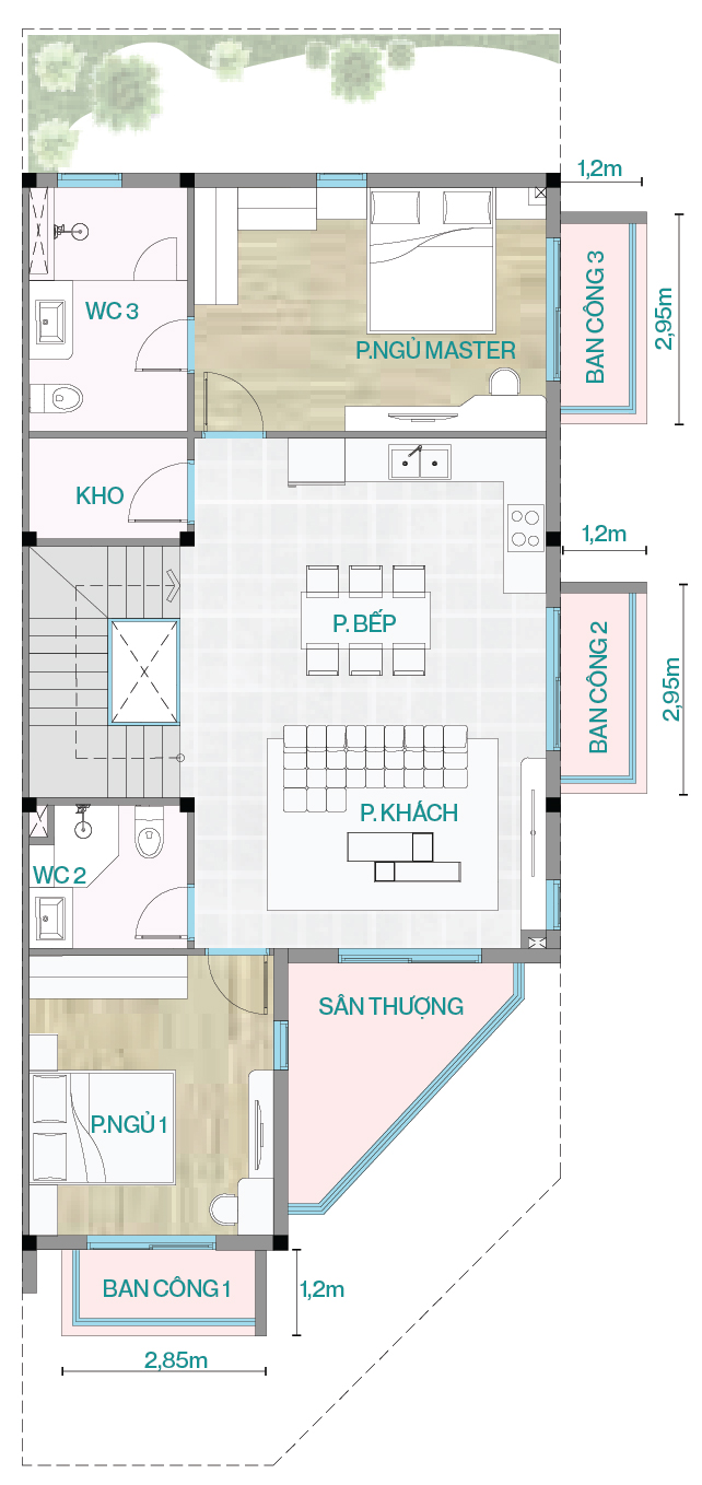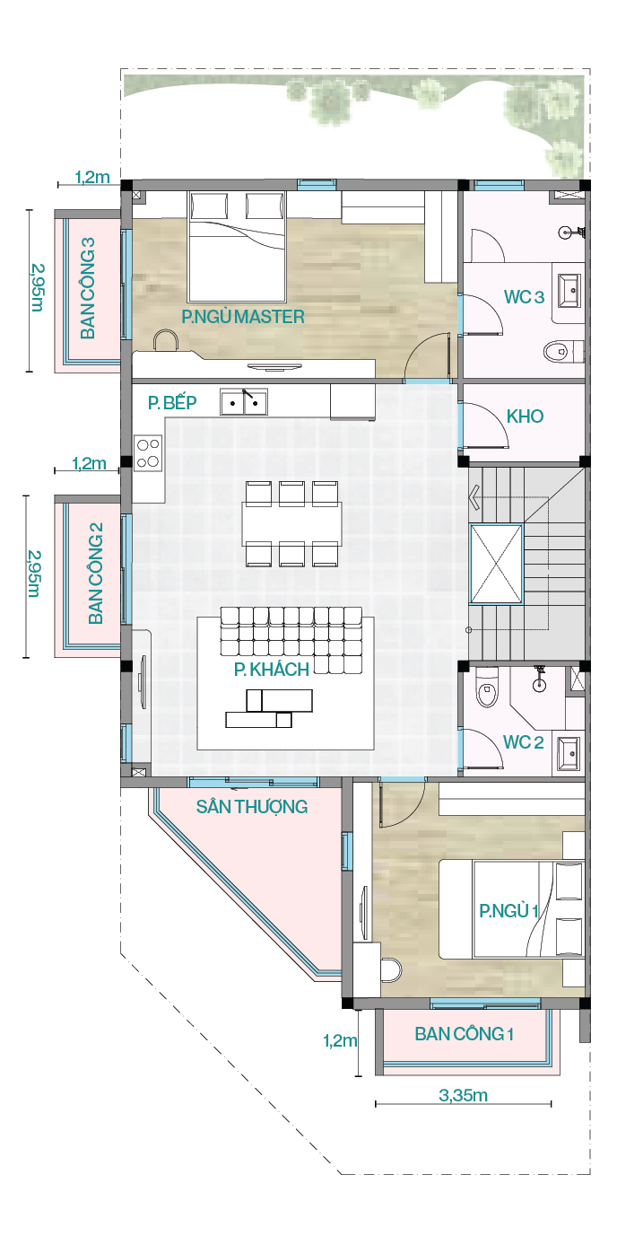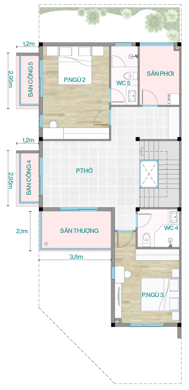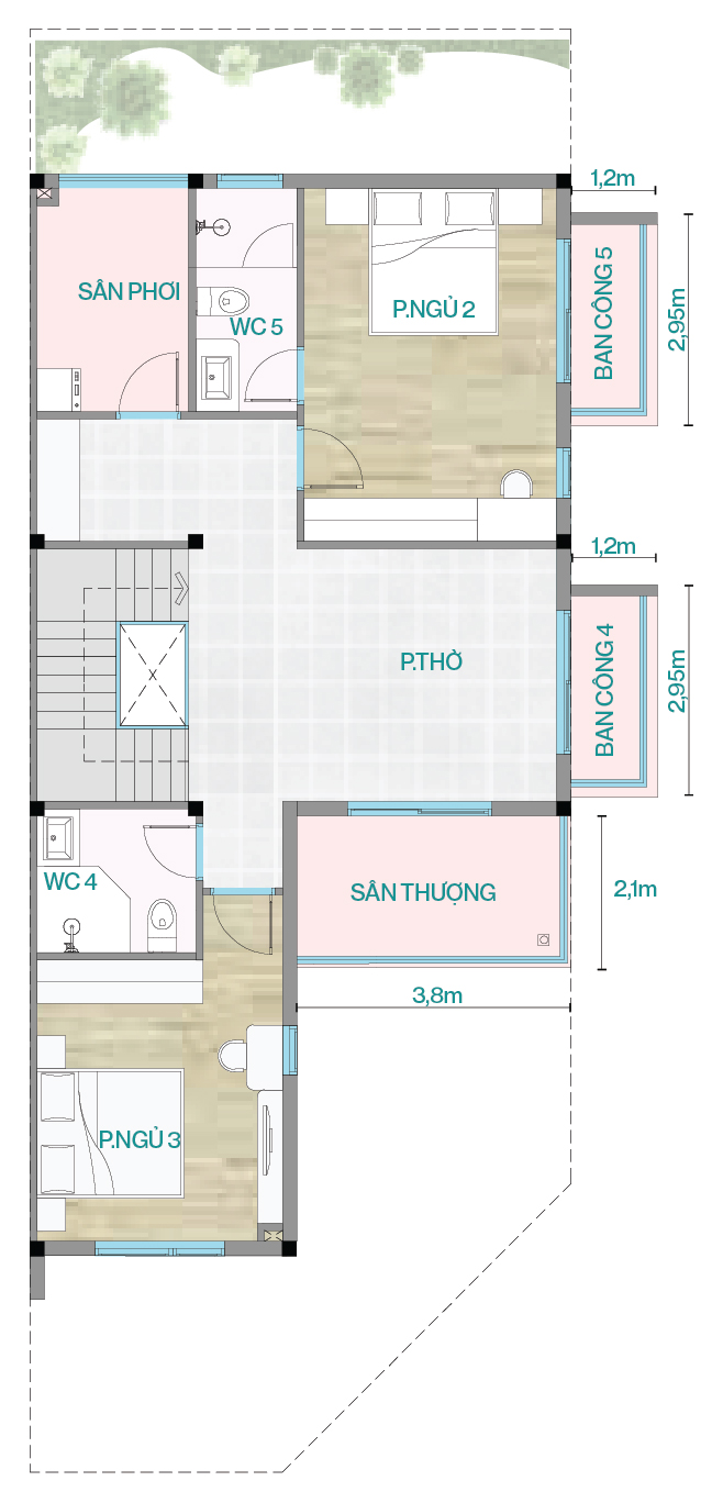 | TẦNG | CÔNG NĂNG | Diện tích phòng (m²) |