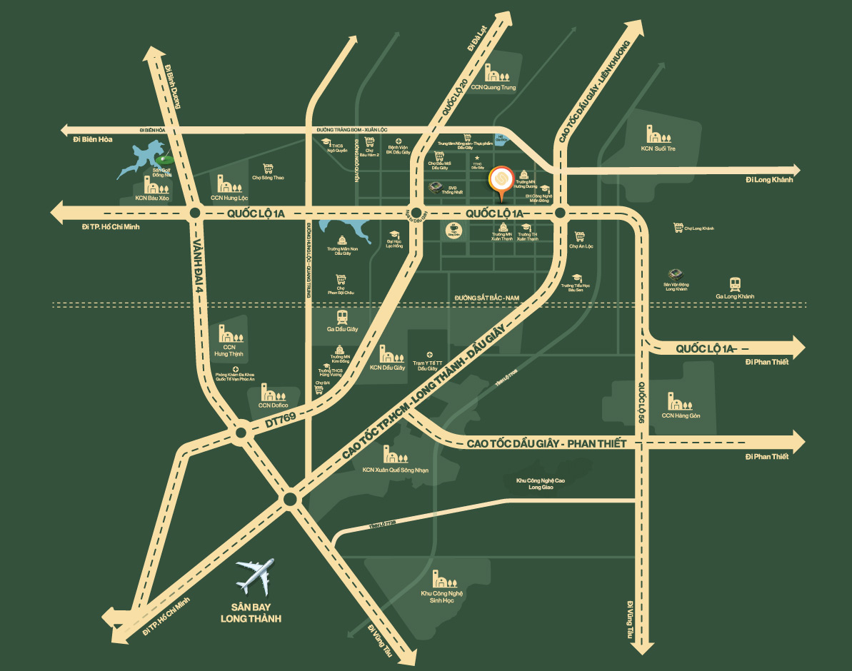 Khu vực đặt Trung tâm hành chính Dầu Giây và là đầu mối của hàng loạt tuyến giao thông. Đầu mối giao thông của hàng loạt tuyến giao thông đa loại địa hình