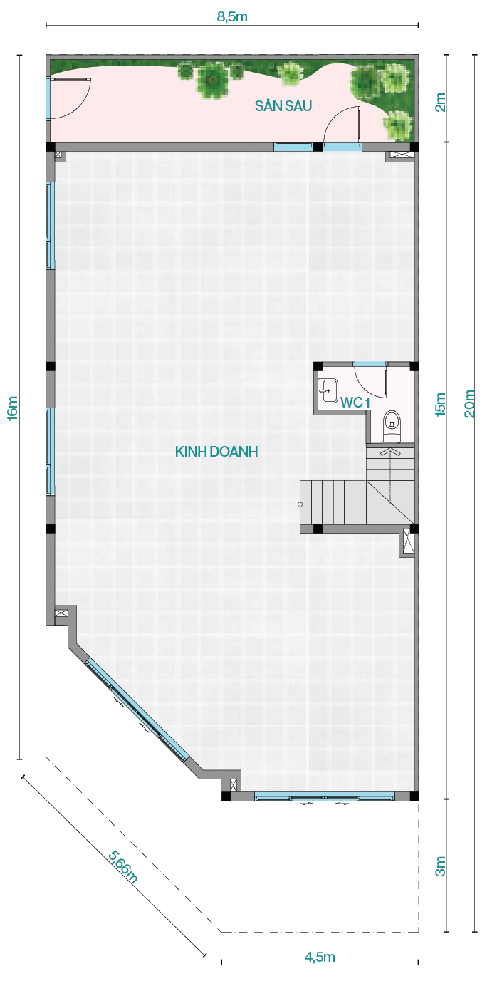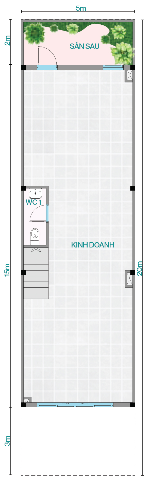 Phương án thiết kế tối ưu cho kinh doanh với 3 lầu, sân thượng rộng rãi, kinh doanh ở cả hai mặt tiền trước - sau. Một mặt là trục giao thông, một mặt là tuyến kênh đào cảnh quan và vẫn trung thành với kiến trúc Venetian lịch lãm.