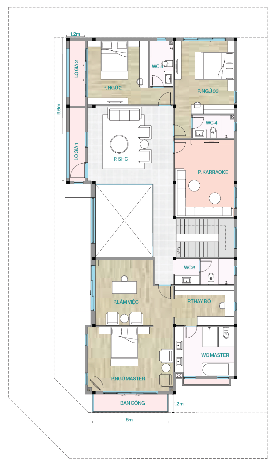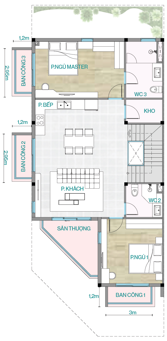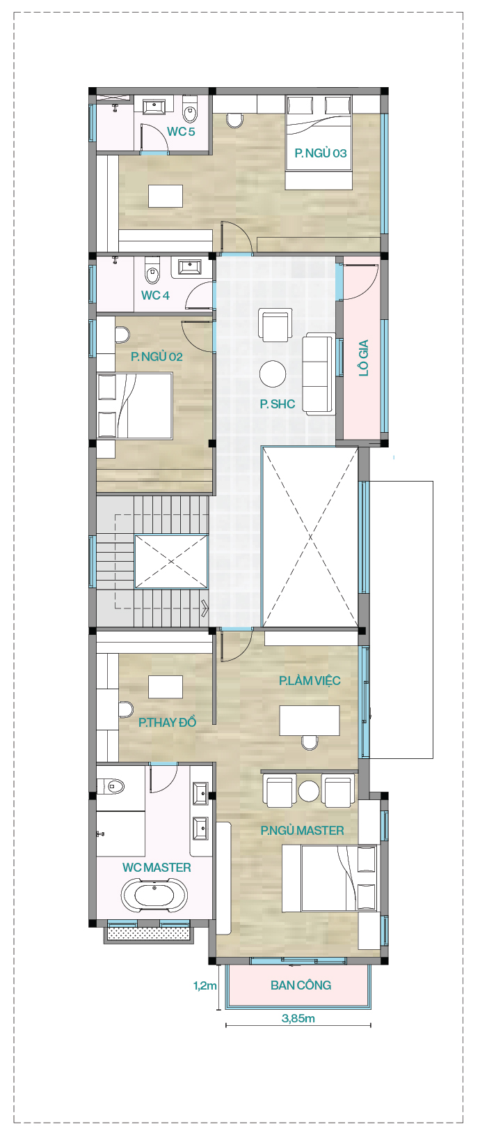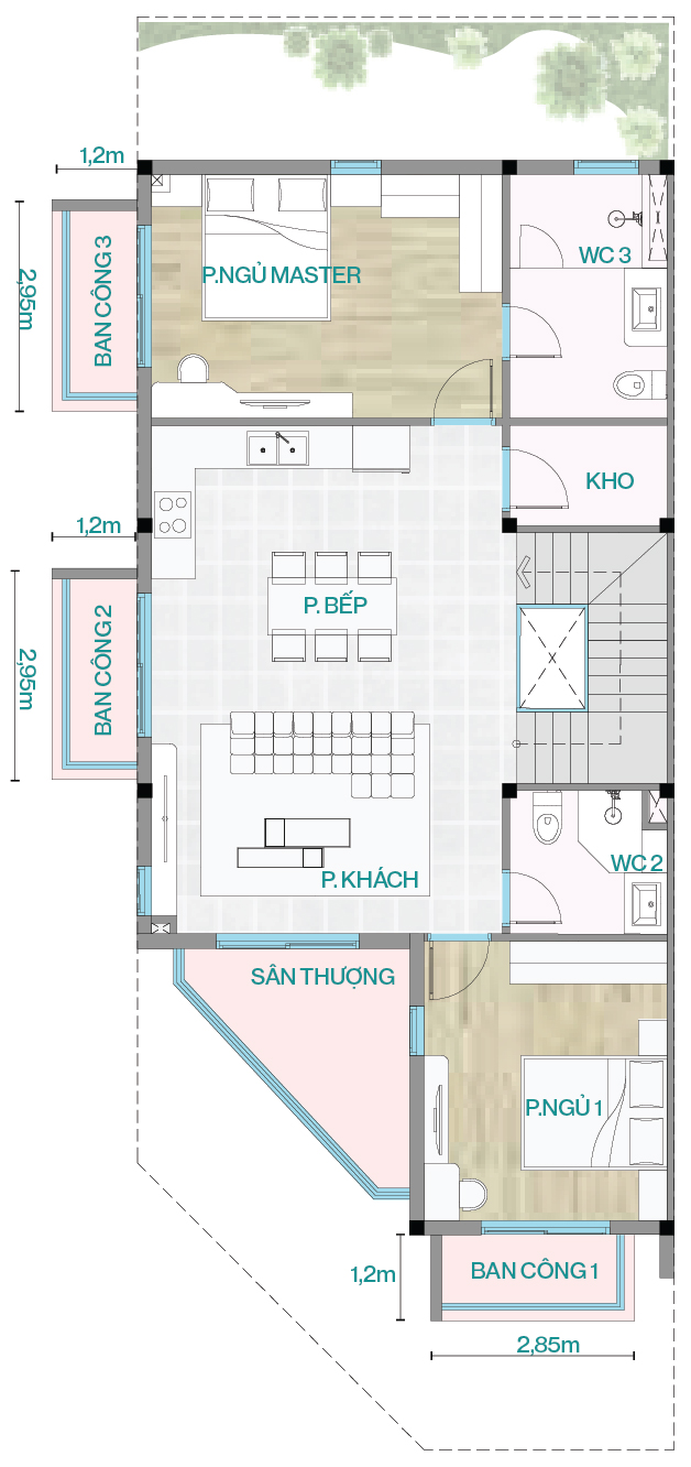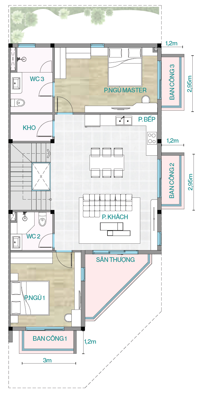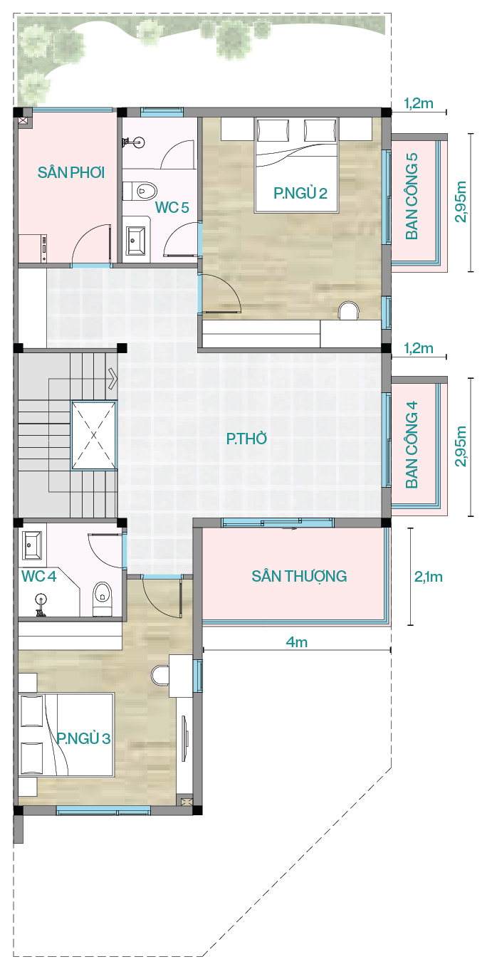 | TẦNG | CÔNG NĂNG | Diện tích phòng (m²) |